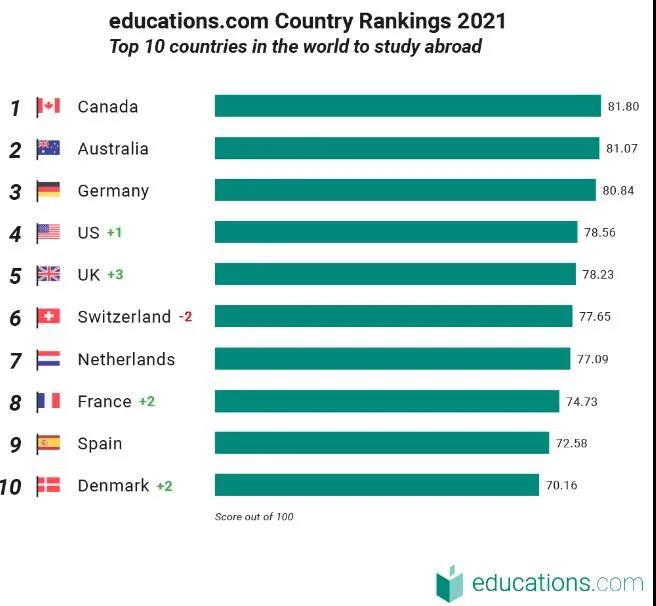 全球教育网站education.com发布了2021年全球十大最佳留学国家排行榜(Top 10 Places in the World to Study Abroad - 2021)。