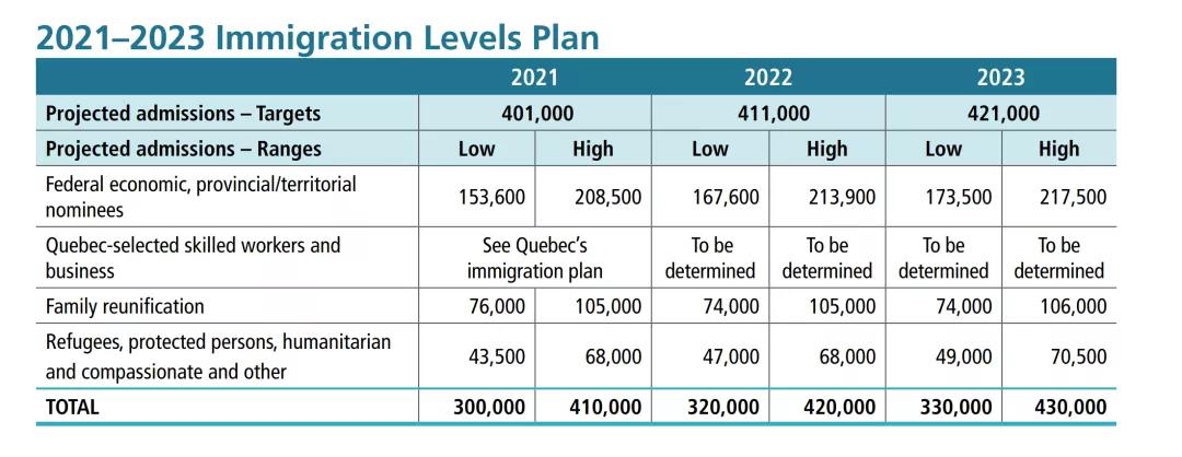 根据《2021-2023年加拿大移民水平计划》,加拿大移民部将在2022年接收41.1万名新移民。