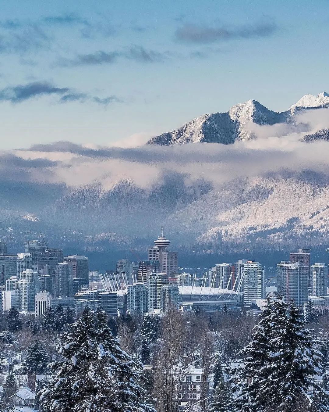 一场新雪之后的温哥华,永恒的背景北岸山脉轮廓更清晰明亮。