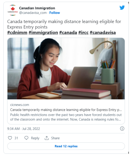 通常来说,如果超过 50% 的课程是通过远程学习完成的,则在线教育不计入综合排名系统(CRS)积分。不过,这类型学生现在迎来了重大利好消息。