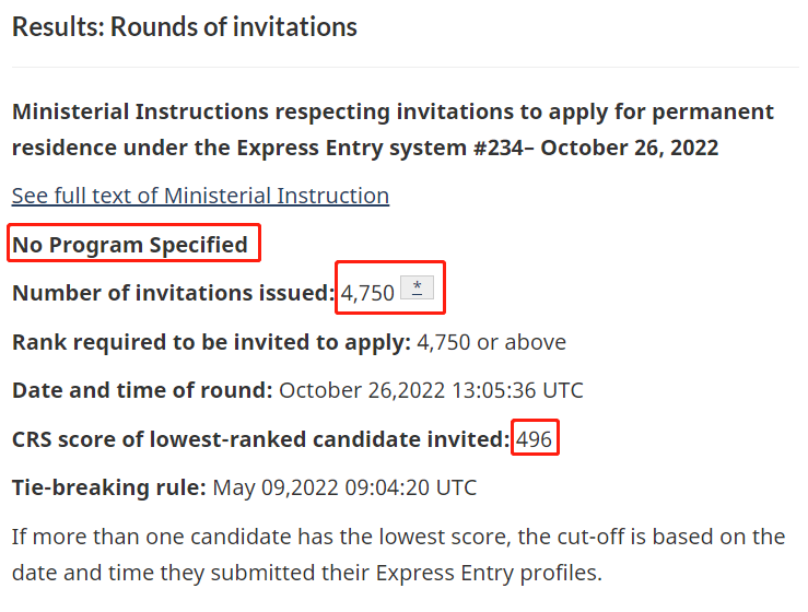 向快速通道候选人发出了4750份邀请,抽选分496分,与上次9月28日抽分500分相比,再降4分!