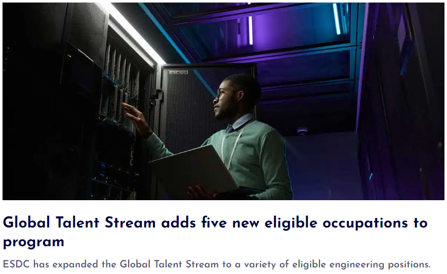2022年12月22日,加拿大就业和社会发展部(ESDC)扩大了“全球人才通道(GTS)”中符合条件的职业清单。“全球人才通道”可以加快处理工作签证,旨在帮助加拿大雇主在技术领域雇用外国技术工人。
