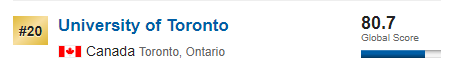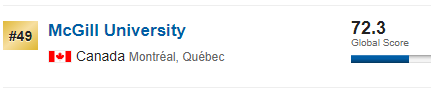 进入世界排名前50的大学有:排名第20的多伦多大学,排名第27的英属哥伦毕业大学和排名第49的麦吉尔大学。这也是进入世界大学排名前100的加拿大大学。