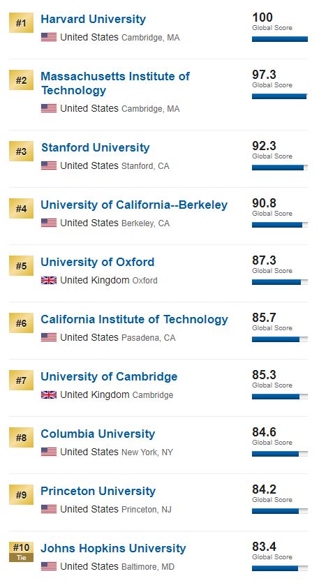 世界排名TOP 10大学