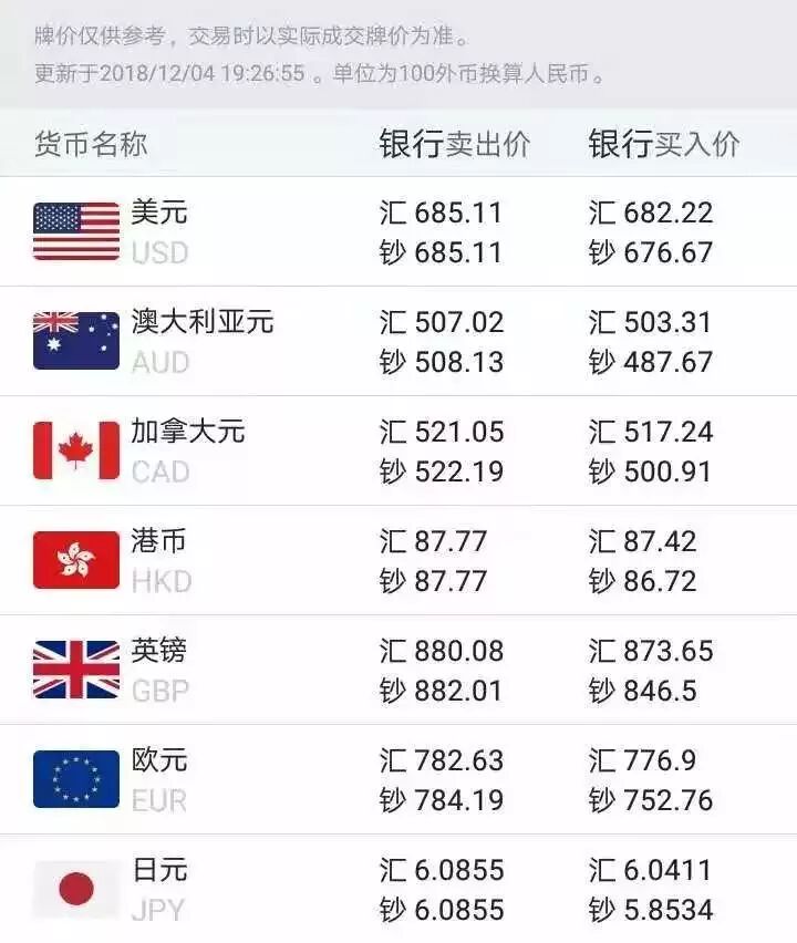 对于留学生而言,用得比较多的是现汇卖出价和现钞卖出价,也就是用咱们的人民币,去买银行的外币。