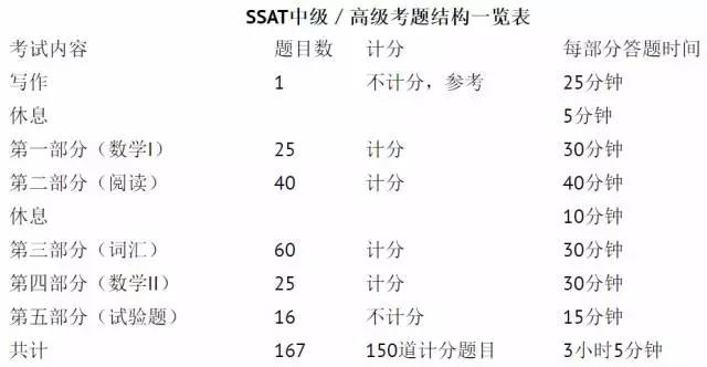 备注:SSAT在中国大陆地区目前只开设中级和高级考试。