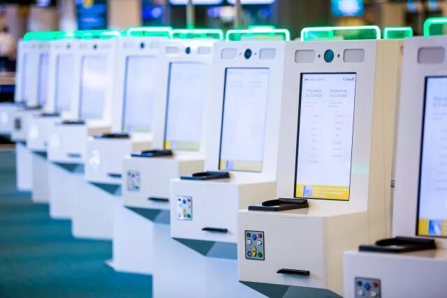 温哥华国际机场的自动通关机提供包括中文在内的各个国家的语言选项。