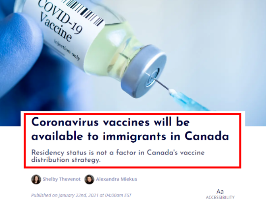 全民都可以免费接种新冠疫苗,无论他们是不是加拿大公民!