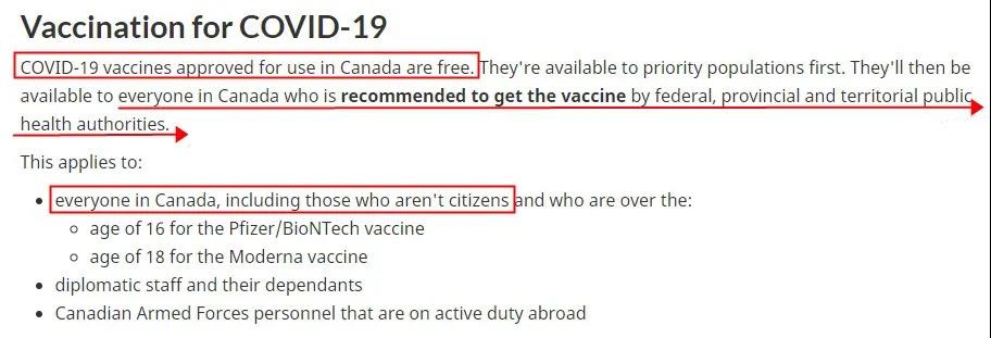与此同时,加拿大政府官网也明确指出,获准在加拿大接种新冠疫苗是