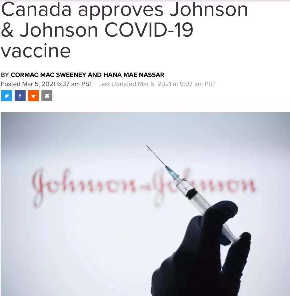 预计,强生的疫苗最快可在今年4月运抵加拿大。据悉,联邦政府已预购了1000万剂强生疫苗,最多可得到额外的2千8百万剂。