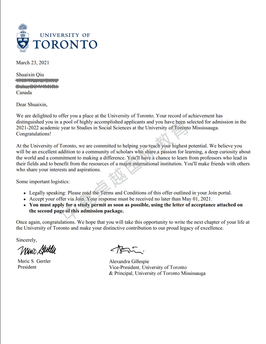 在美国USNews2021年发布的世界大学排行榜上,多伦多大学排名18(清华大学排名36,北京大学排名59)。仇帅心同学喜获世界顶级大学录取。阿尔伯塔大学奖励仇帅心一万五千加币奖学金,希望仇帅心能选择他们学校。