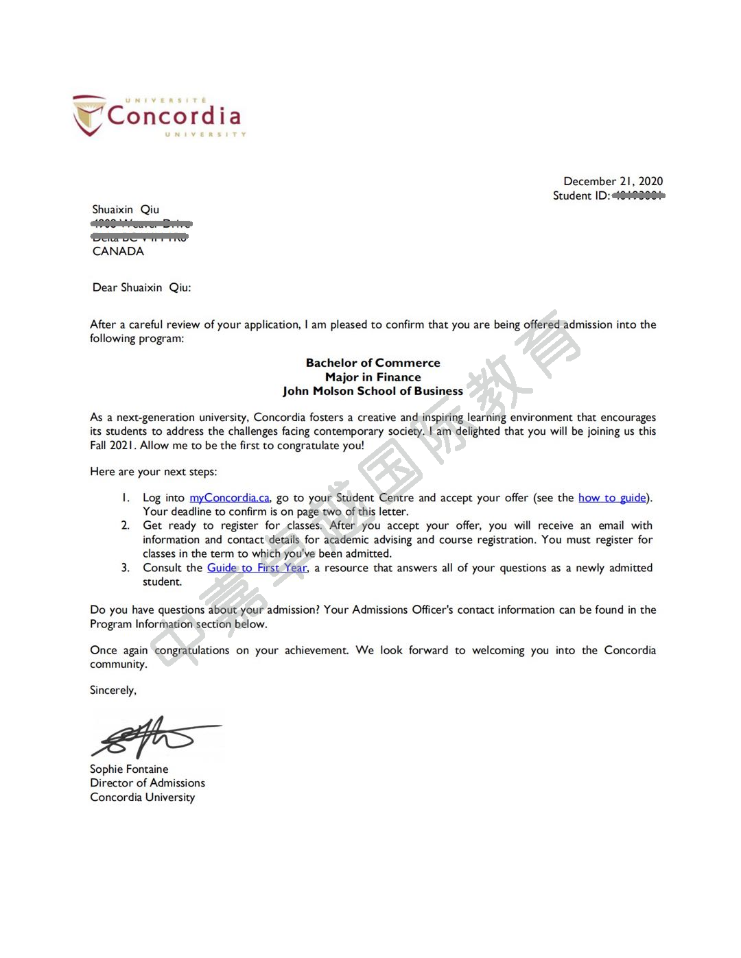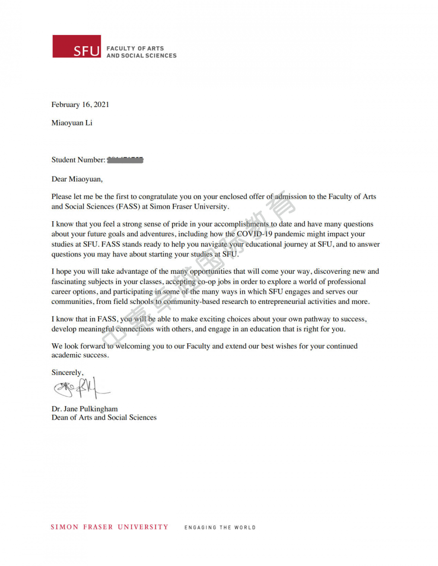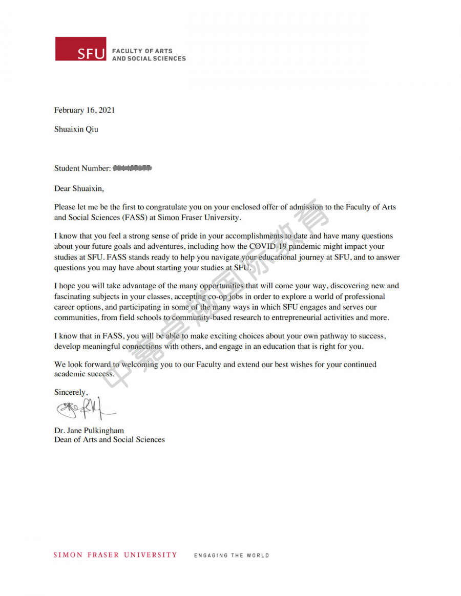 约翰默尔森商学院金融专业也给仇帅心发来了录取通知书。加拿大世界五百强公司一半以上的CEO都是这所商学院的毕业生。